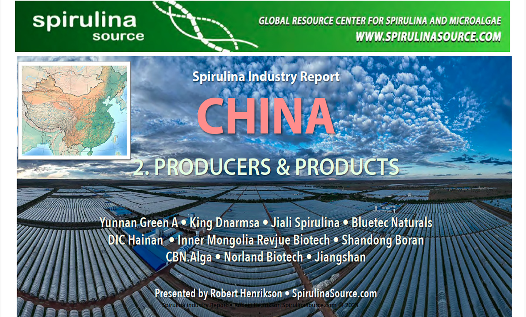 Compiled and curated from the largest structured database of 600 global spirulina producers and their products: